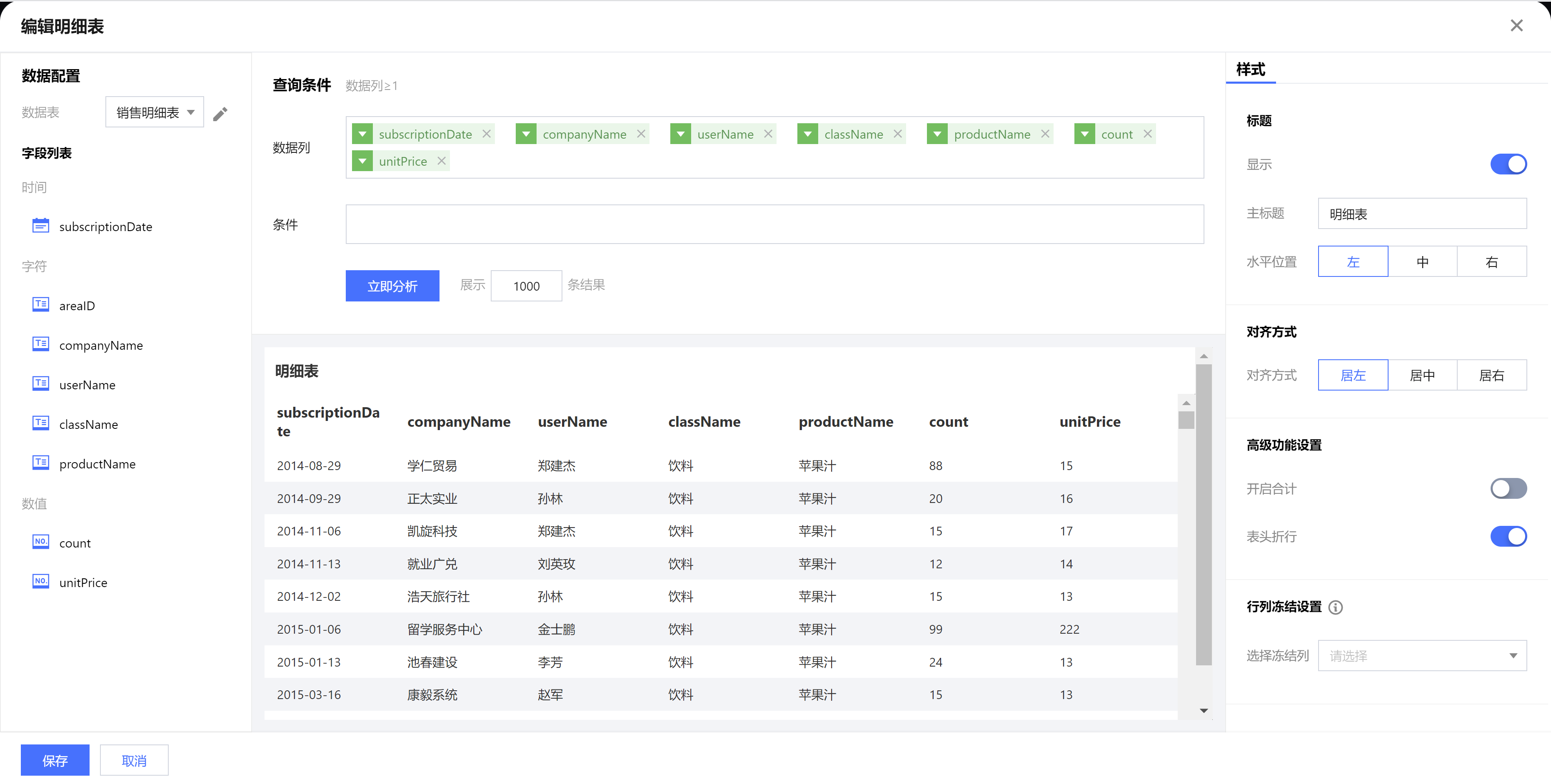 | 保留小数位 | 设置数值小数位的位数,如“1211.2334”,设置保留小数位为“2”,则展示“1211.23” |