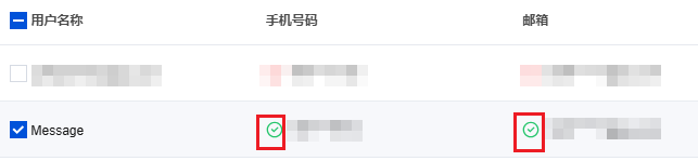在 消息订阅 页面中,标有 * 号的消息类型,必须选择邮件或短信中的至少一种消息渠道,否则无法订阅。 已添加的消息接收人中,若选择了邮件或短信消息渠道,则需保证邮箱、手机号码已通过验证,方可接收到消息。如下图所示: