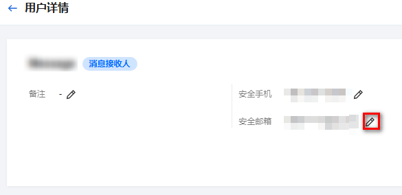 3. 在用户详情页面,单击安全邮箱处的修改图标。