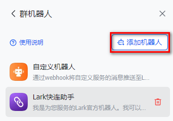 3. 在群机器人页面,单击添加机器人。