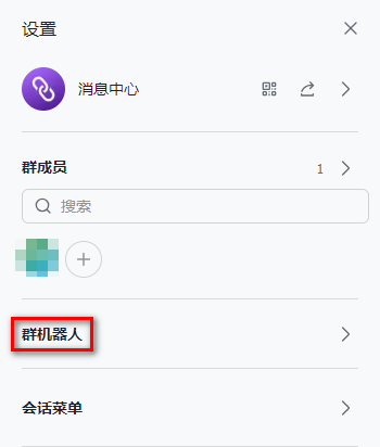 1. 在 PC 端打开 Lark,找到需要接收消息的 Lark 群,单击 。 2. 在设置页面,单击群机器人。