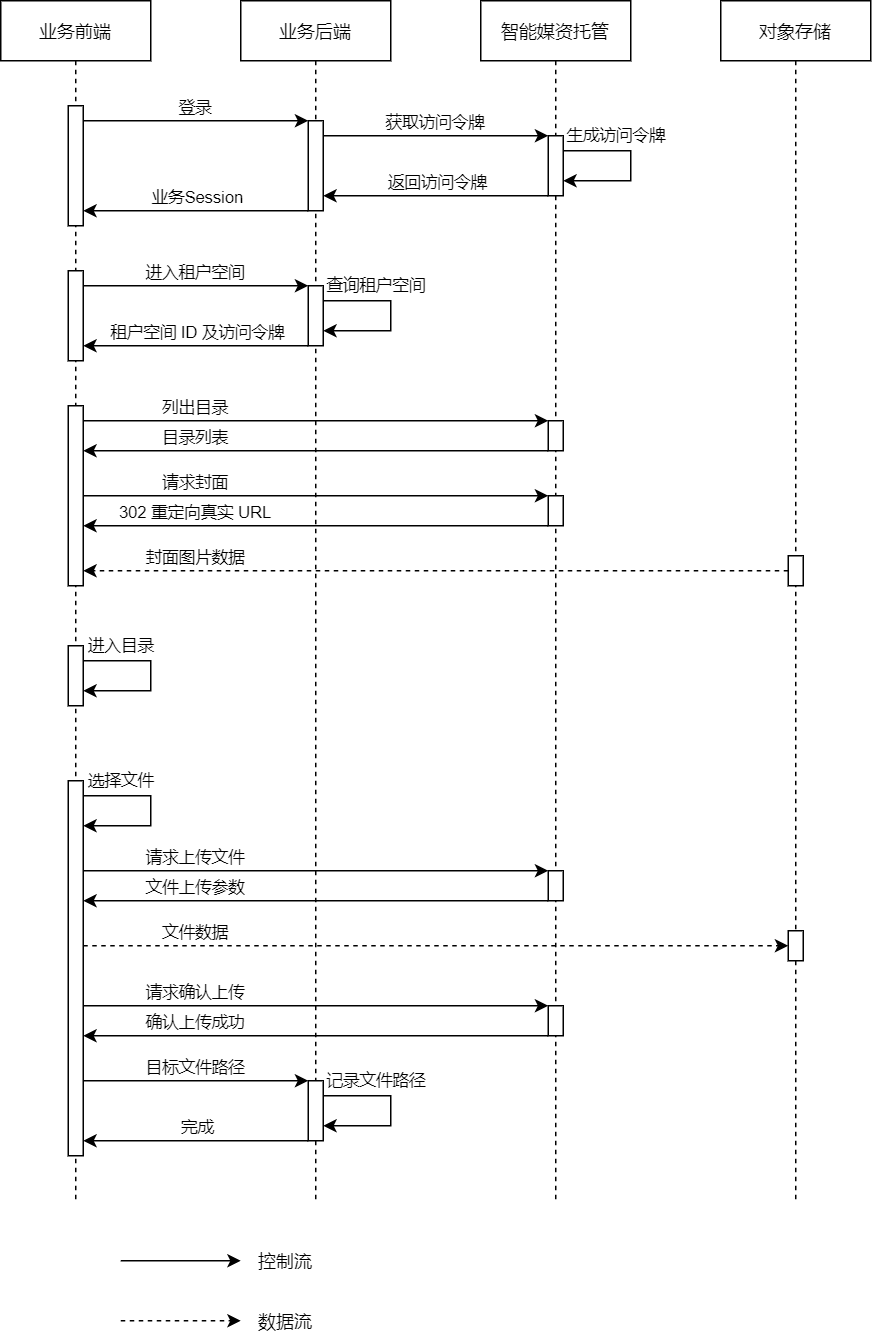 智能媒资托管服务在设计时即考虑同时支持服务端和客户端发起请求,除了在请求中需要使用媒体库密钥的接口,其他接口均可以安全的在客户端直接调用,提高了请求的效率。此外,智能媒资托管服务侧重文件系统的元数据管理,具体的文件数据均托管在对象存储上,因此智能媒资托管服务提供的接口主要是控制流和元数据流,而数据流则是直接到达对象存储,这保证了客户端在传输数据时,可以充分享受到对象存储在数据传输上的优势。