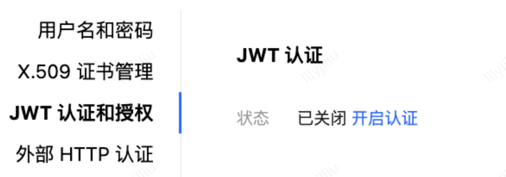 3. 单击认证管理,切换至 JWT 认证和授权。单击开启认证。