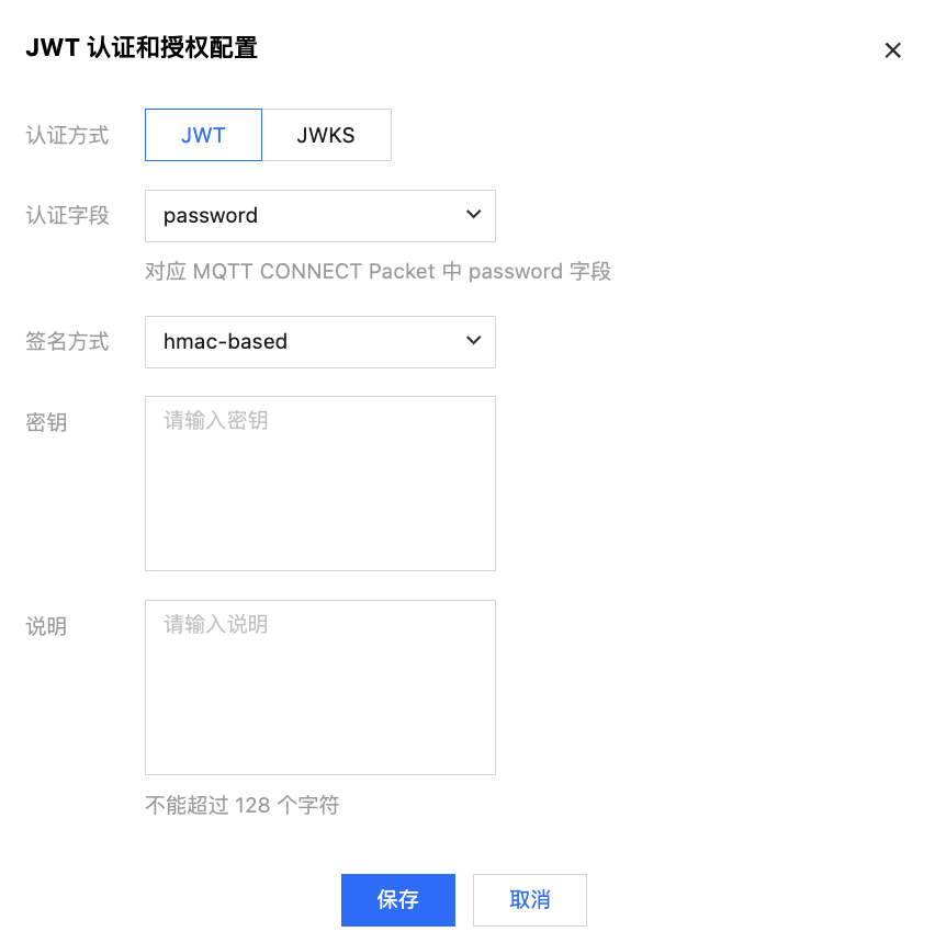 腾讯云消息队列 MQTT 版也支持客户使用 JWKS(Json Web Key Set)的形式来使用 JWT 进行认证,根据下面说明完成配置: