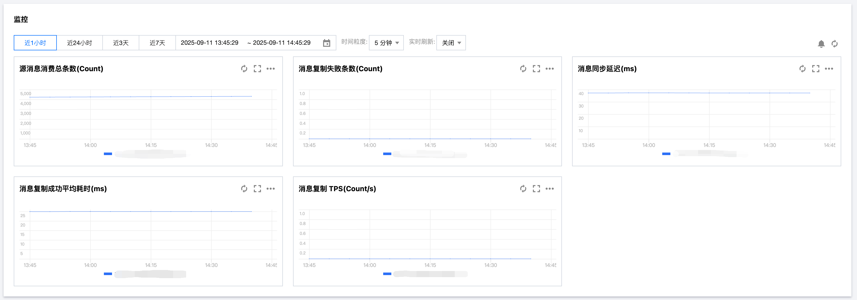 3. 在监控部分,您可以查看当前消息复制任务的实时监控,例如源消息消费总条数、消息复制失败条数、消息同步延迟等。