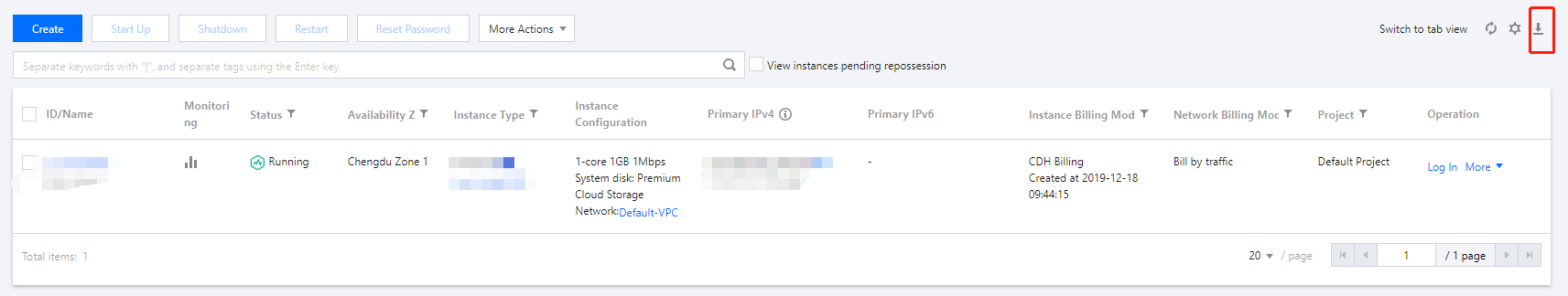 2. 在实例管理页面上方,选择地域,根据实际使用的视图模式进行操作: