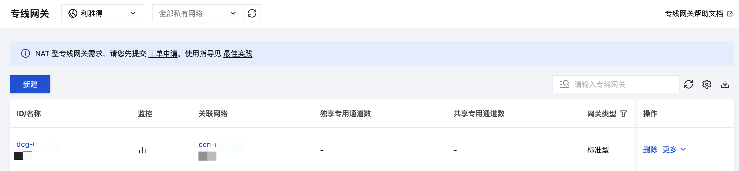 页面上方选择地域和私有网络,然后在专线网关列表中单击目标实例 ID。