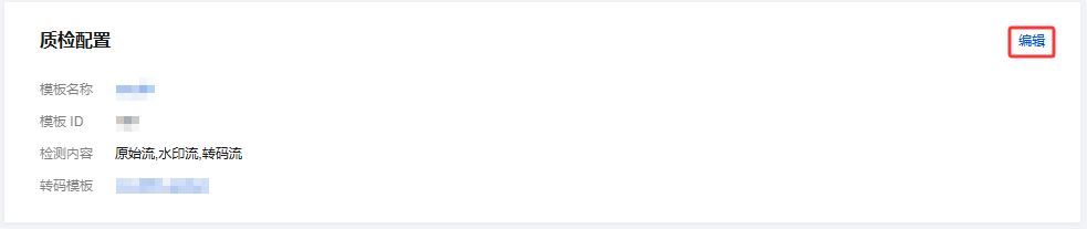 1. 进入域名管理,单击需配置的推流域名或管理进入域名详情页。 2. 选择模板配置页签,单击质检配置标签右上角的编辑。