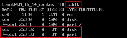 /dev/vda 是系统盘,/dev/vdc 是新增数据盘。