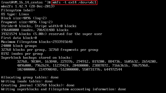 EXT4 为例:mkfs -t ext4 /dev/vdb