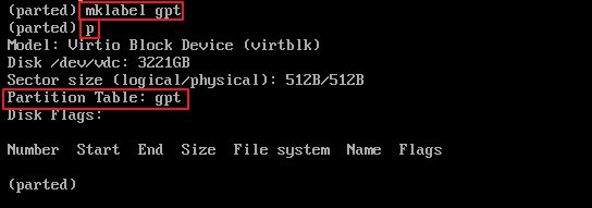 /dev/vdc1 的详细信息。q 并按 Enter,退出 parted 分区工具。lsblk