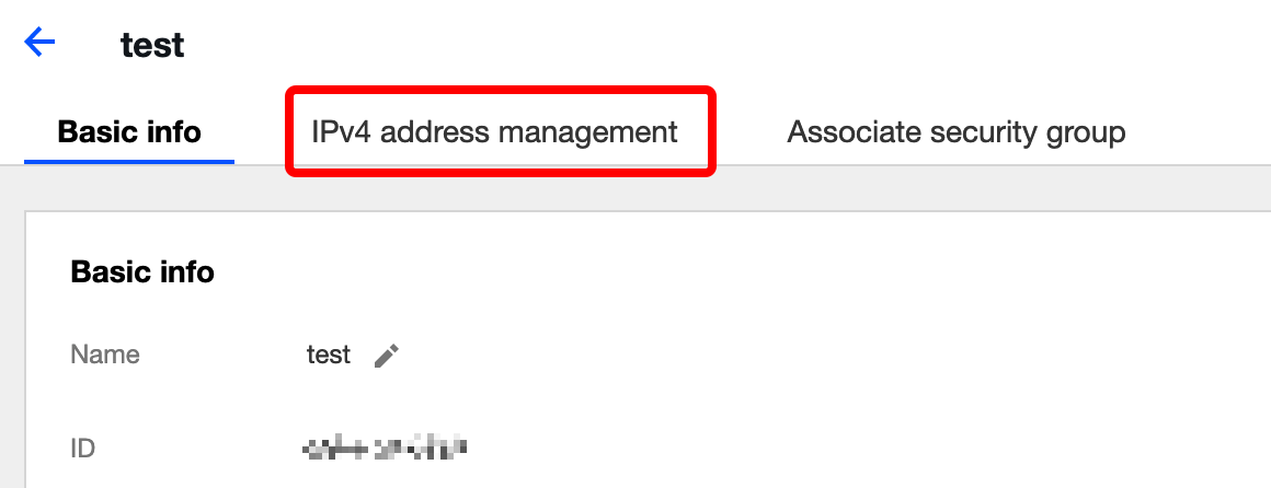 4. 单击选项卡中的 IPv4 地址管理,查看已绑定的主内网 IP。