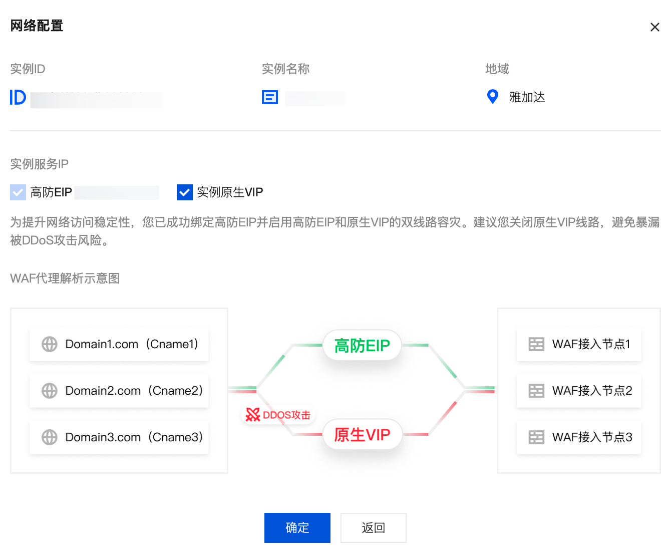 1. 对于绑定了高防 EIP 的实例,可进行网络配置。