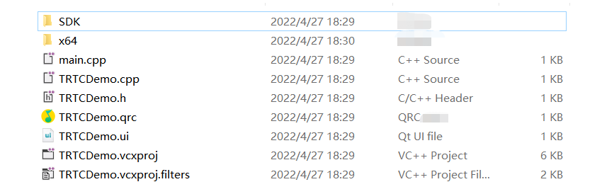 TRTCDemo.cpp 文件顶部增加头文件引入,代码如下:#include "ITRTCCloud.h"#include <QLabel>