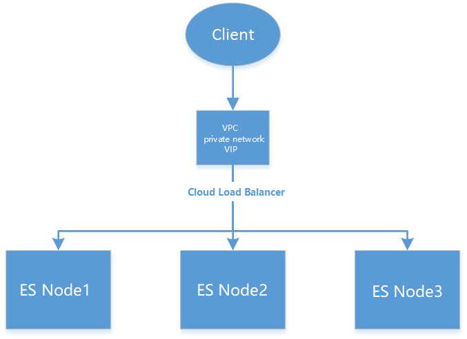 ES 在用户的 VPC 下提供了一个访问 ES 集群的 VIP,通过负载均衡的方式挂载了 ES 集群内的所有节点。这样做的目的,一方面是为了适配集群的弹性伸缩并保证其高可用性,当 ES 集群的节点发生变化时,VIP 会自动更新节点信息;另一方面,简化用户的操作,用户不用再关注集群节点 IP、port 等信息的变更。